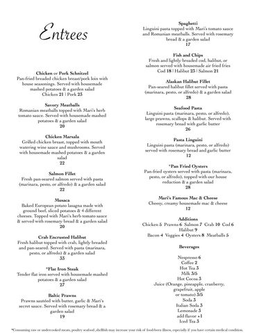 At Mari's Kitchen, we pride ourselves on a rich culinary journey that combines traditional recipes with modern flair. Our commitment to using fresh, local ingredients ensures that every dish is bursting with flavor and authenticity.